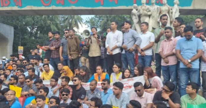 Earlier at 2.30 pm, Chhatra Dal took out a protest march from the central Shaheed Minar to protest the harassment of legal advisor Asif Nazrul in France and demand trial. The procession circled the entire campus and ended in front of the Raju sculpture.