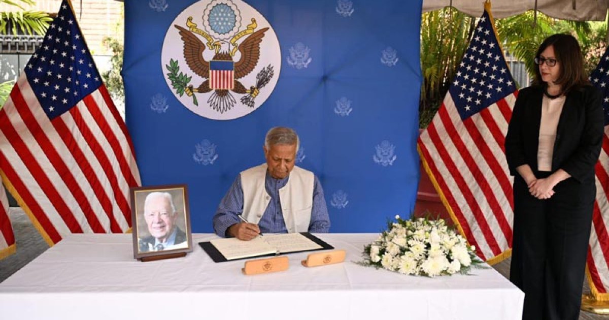 Chief Adviser Professor Muhammad Yunus paid tribute to the former US President and Nobel laureate Jimmy Carter. The Chief Adviser laid a wreath at the late President's portrait at the US Embassy in Baridhara, Dhaka on Tuesday morning and wrote a condolence message in the open condolence book at the embassy.