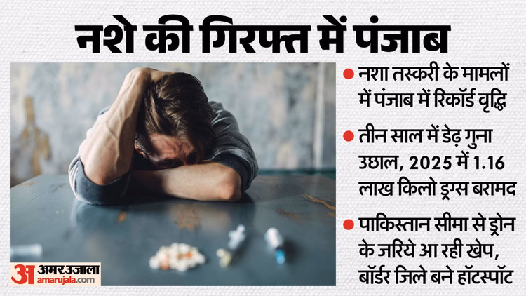 A record increase in drug trafficking cases has been registered in Punjab and the state has now reached number-1 in the country. There has been one and a half times increase in drug smuggling in three years. According to the report of the Union Home Ministry, 1.16 lakh kilograms of drugs were recovered in the year 2025, which is the largest figure till date.