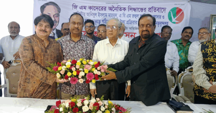 Former Jatiya Party senior co-chairman barrister Anisul Islam Mahmud presided over the meeting, co-chairman Syed Abu Hossain Babla, Presidium member Sahidur Rahman Tapa, Shafiqul Islam Centu, ATUM Taz, Nazh, Md. Bhuiyan.