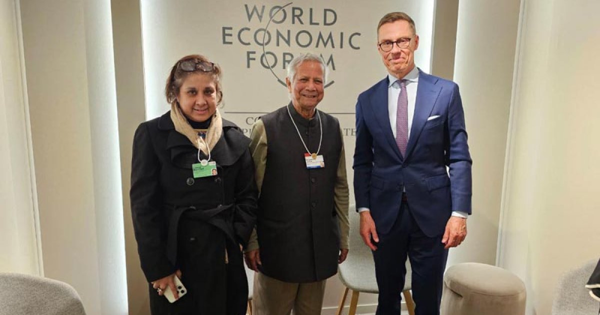 Finland's President Alexander Stubb met with Chief Advisor Professor Muhammad Yunus on the sidelines of the World Economic Forum conference in Davos, Switzerland. The press wing of the Chief Adviser reported this information.