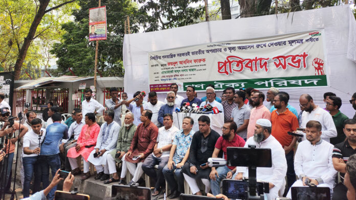 Mamunur Rashid Khan, president of the Mass Unity Council, presided over the protest rally.