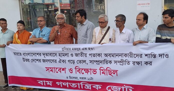 He said these things at the rally and protest march organized by the Left Democratic Alliance in front of the National Press Club on Wednesday (December 4) 'Punish those who attacked the Bangladesh Embassy in India and insulted the national flag, build the unity of the people of both countries, protect communal harmony'.