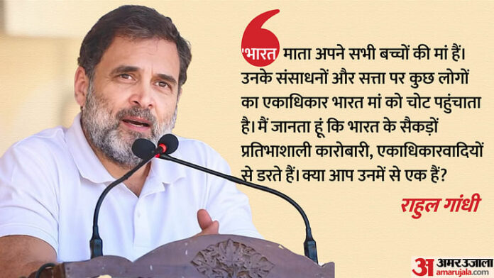 Gandhi said in his article that 'Mother India is the mother of all her children. The monopoly of some people on their resources and power hurts Mother India. I know that hundreds of talented businessmen in India are afraid of monopolists. Are you one of them? Are you afraid of monopolists in collusion with the state entering your territory and crushing you? Afraid of Income Tax, CBI or ED raids that will force you to sell your business to them? They'll change the rules of the game midway to beat you?'