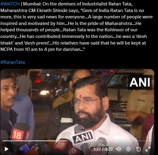 'India's Kohinoor has been separated from us. Ratan Tata's absence is a great pain. It is very difficult to remain so ordinary after reaching such a high position. Seeing him people felt energized, he is the self-respect of Maharashtra and India.