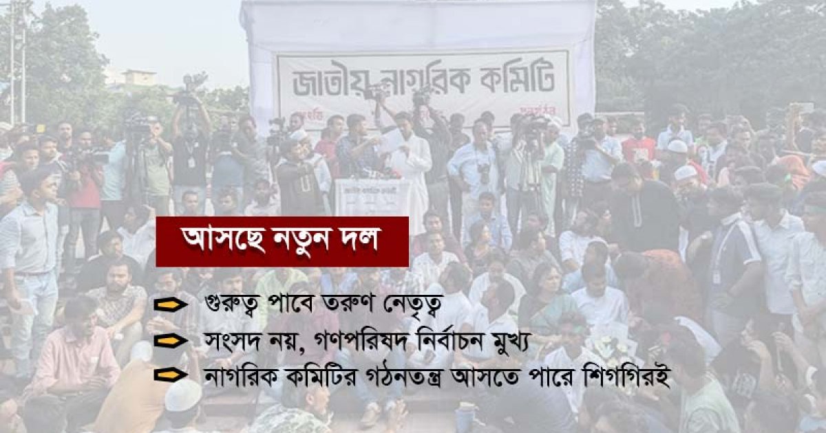 The process of forming a new political party under the leadership of the Civic Committee and the Anti-Discrimination Student Movement is underway. The top leadership structure of the party will consist of four posts – Convener, Member Secretary, Spokesperson and Chief Organiser. According to related sources, Naseeruddin Patwari, convener of the civic committee, member secretary Akhtar Hossain, chief organizer Sarjis Alam and convener of the anti-discrimination student movement, Hasnat Abdullah, can come to the top positions.