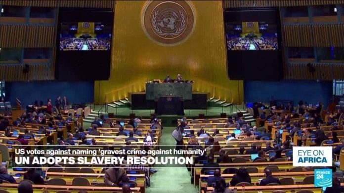 In tonight’s edition, the UN General Assembly designated the transatlantic African slave trade as “the gravest crime against humanity,” in a move advocates hailed as a step towards healing and possible reparations. Also, in a visit to top African trading partner Algeria, Italy’s prime minister, Giorgia Meloni, said the two nations would work to increase deliveries of Algerian gas. And the conflict in the Middle East risks crippling Kenya’s flower industry.